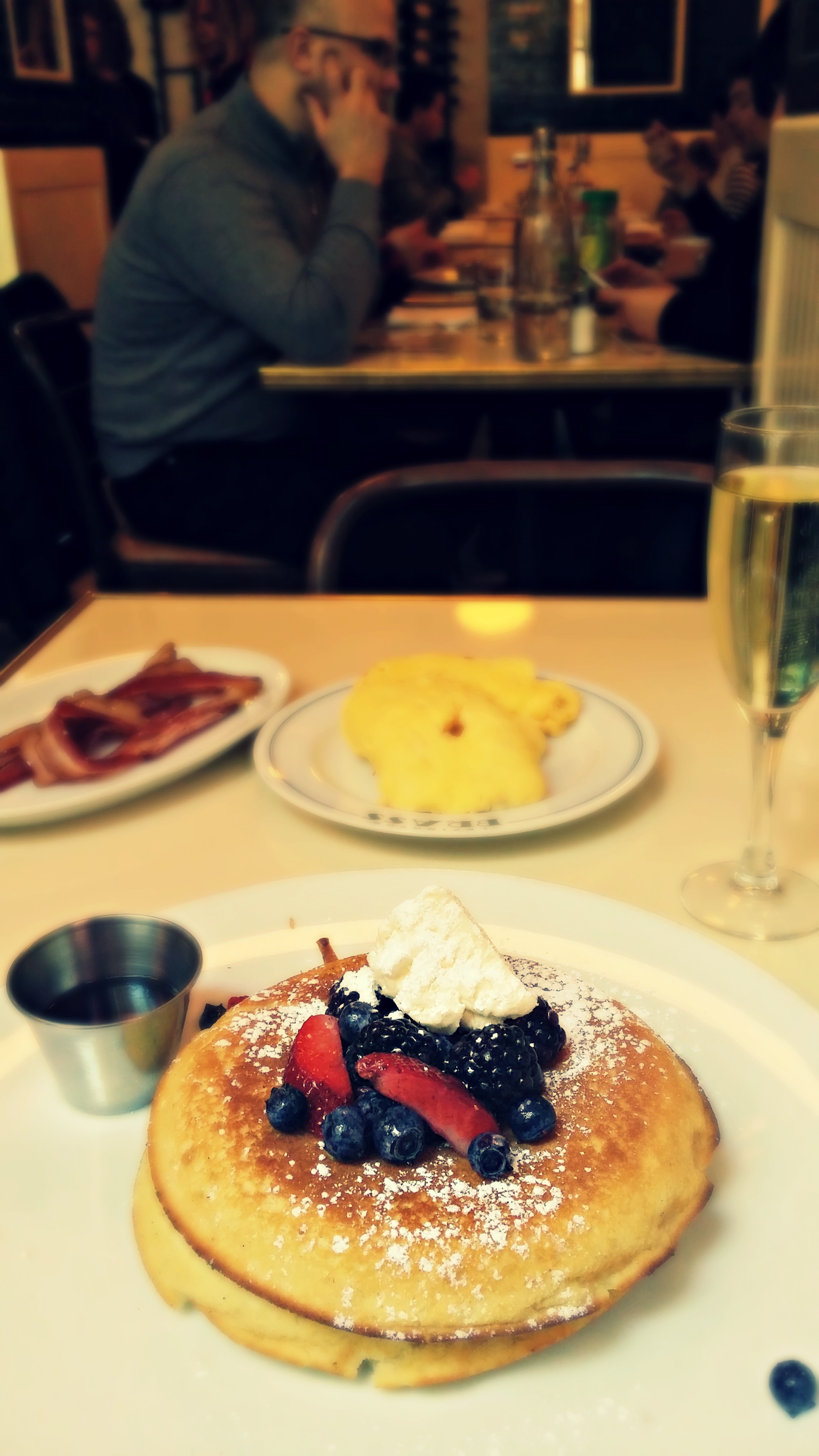 I only had a few things planned (really, just eating and catching a double feature), so I left myself a lot of free time to relax and reflect on the season. The day started with a highly anticipated brunch at a restaurant with rave reviews and a beautiful menu. Unfortunately, the experience fell incredibly short. The restaurant was busy, but not at capacity and there were adequate “helpers” or “table runners” available. I was annoyed from the time I was seated…literally crammed into a corner next to the cash register. I thought I could manage, but as I was placing my order, I asked to be moved to the empty table next to mine. The waiter obliged. He was neither rude nor overly joyous. I placed my order for the most decadent fruit infused pancakes, eggs, and Canadian bacon (living in Brazil, these things are indeed a luxury) and a glass of the best sparkling wine on the menu. The waiter took my order, then said that they might be sold out of the Rosé, but would check with the bartender. He returned to the table to inform me that they were indeed sold out, and offered me the cheapest sparkling wine on the menu as an alternative <insert side eye>. My food arrived and I was hungry and ready to eat.
